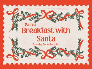 Banty Rooster 4803 Old Turnpike Rd, Lewisburg, PA, United StatesBring the kids to Banty Rooster for a buffet breakfast, winter crafts and of course a visit with Santa! There are four seatings: 9am, 10:30am, 12pm, and 1:30pm! *Gratuity not included in ticket price* Tickets are non refundable.